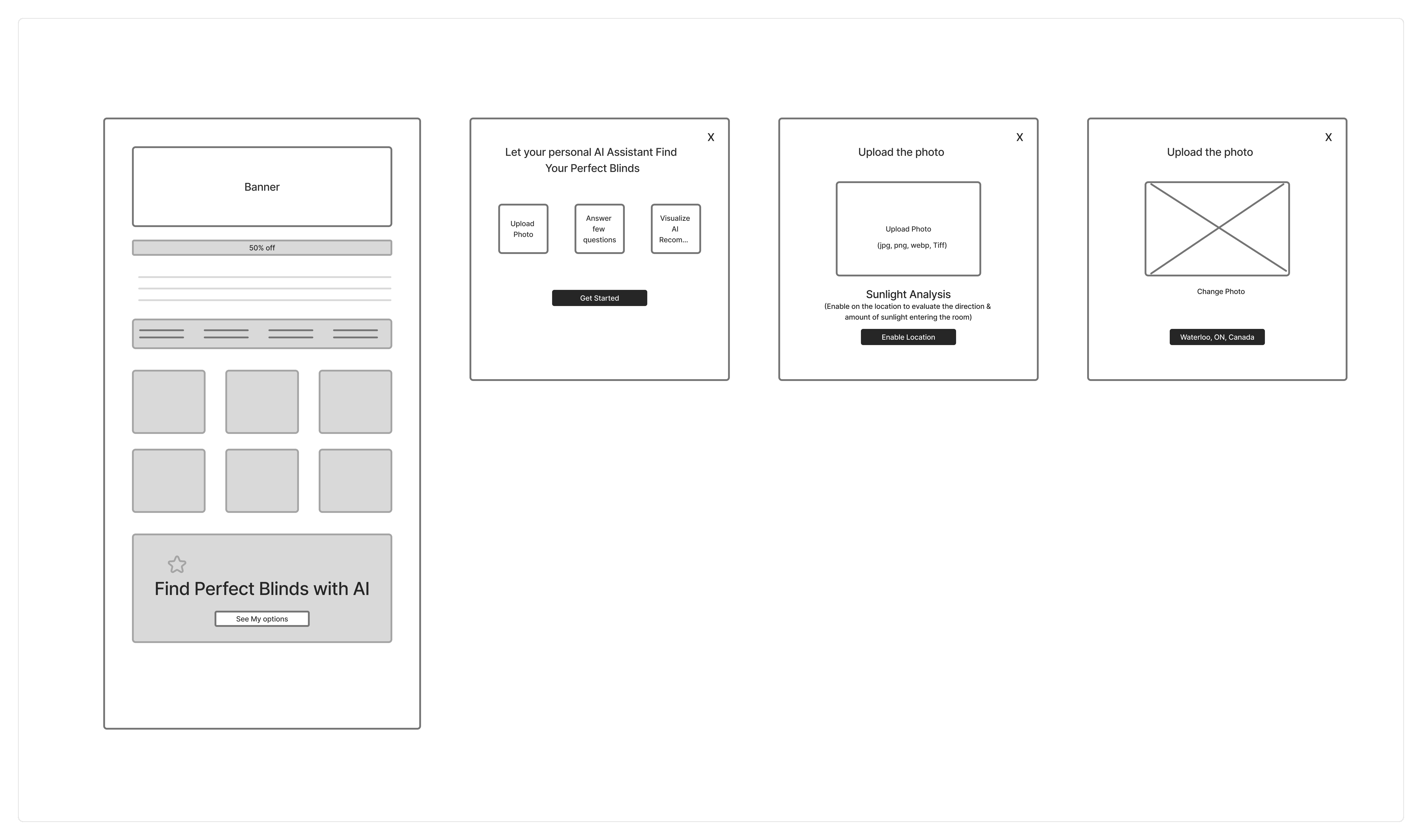 User will upload the pictures of their Windows, Sliders and more to measure the size of the area and share their choices about the the type of Shades or Blinds they need and their budget by answering questions to get recommendations about: