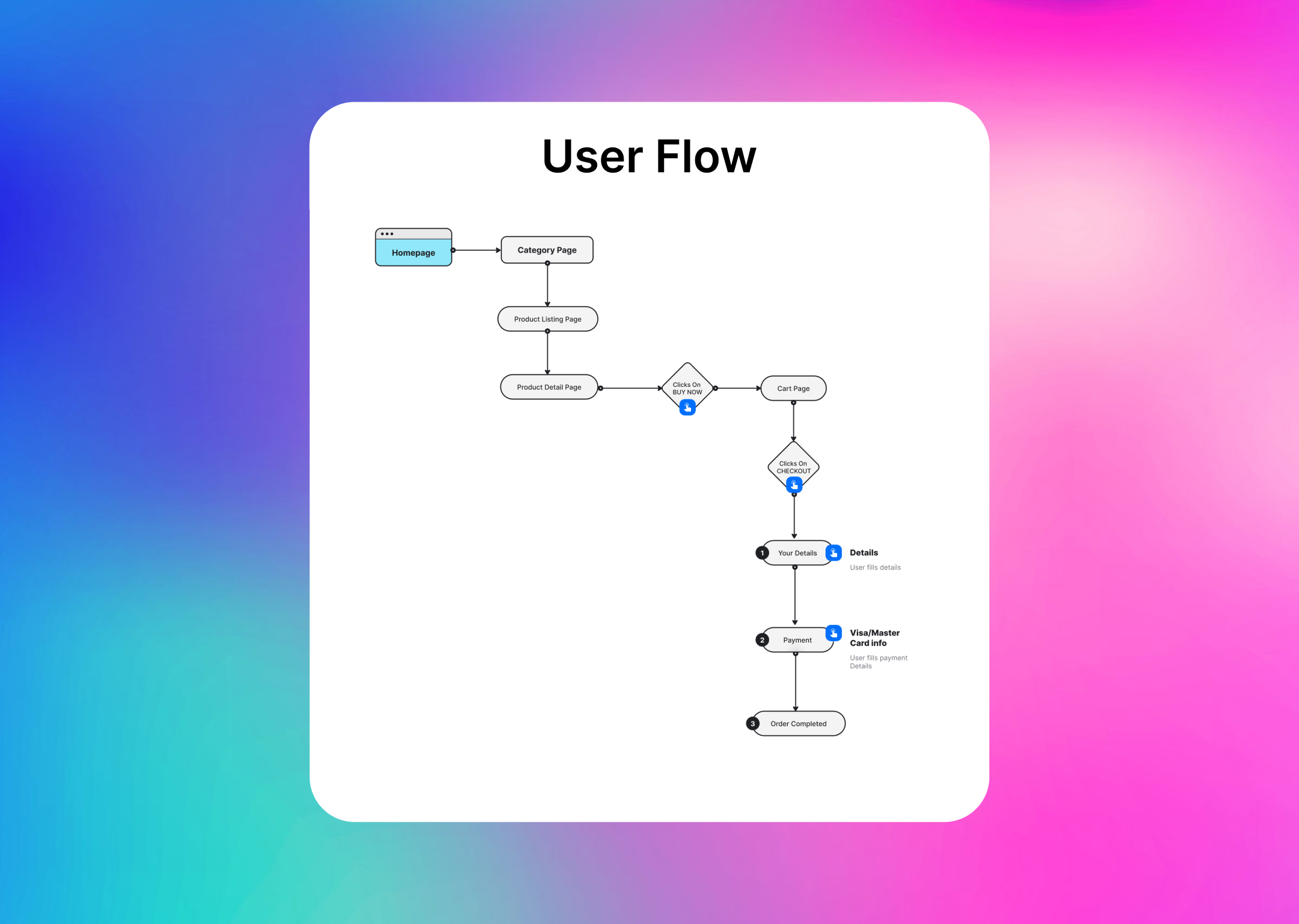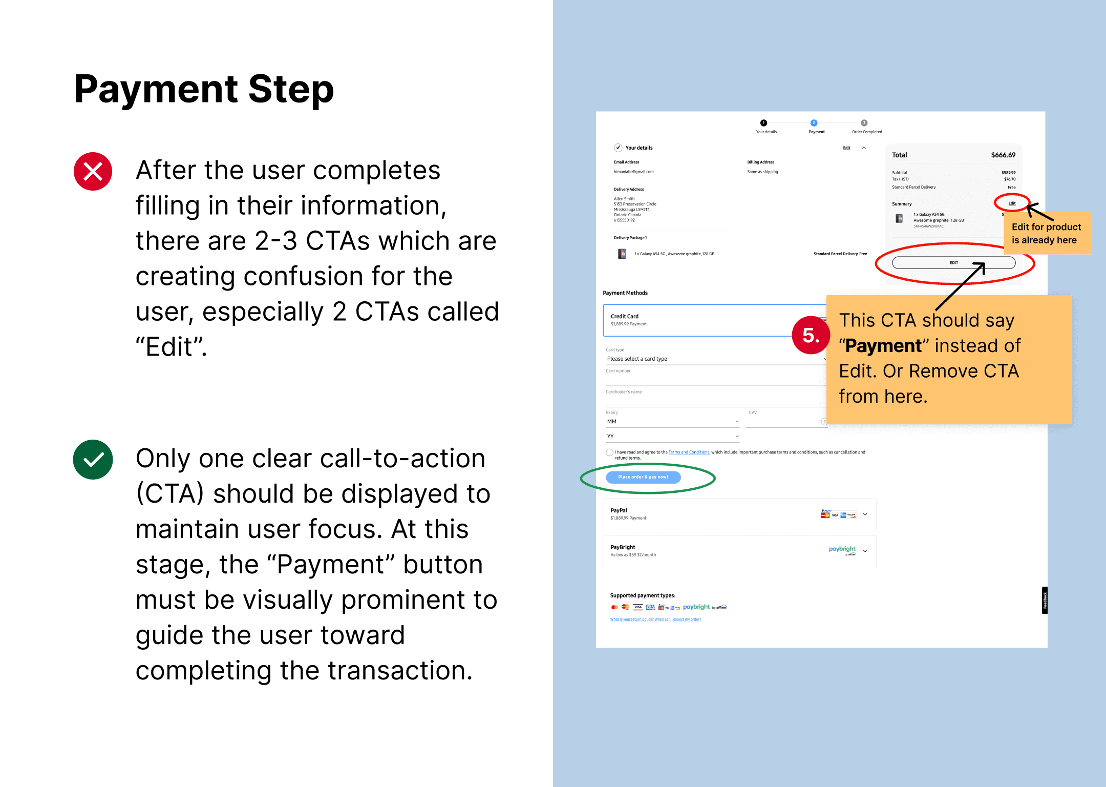 Screen-by-screen walkthroughs with annotated screenshots to map the full checkout journey