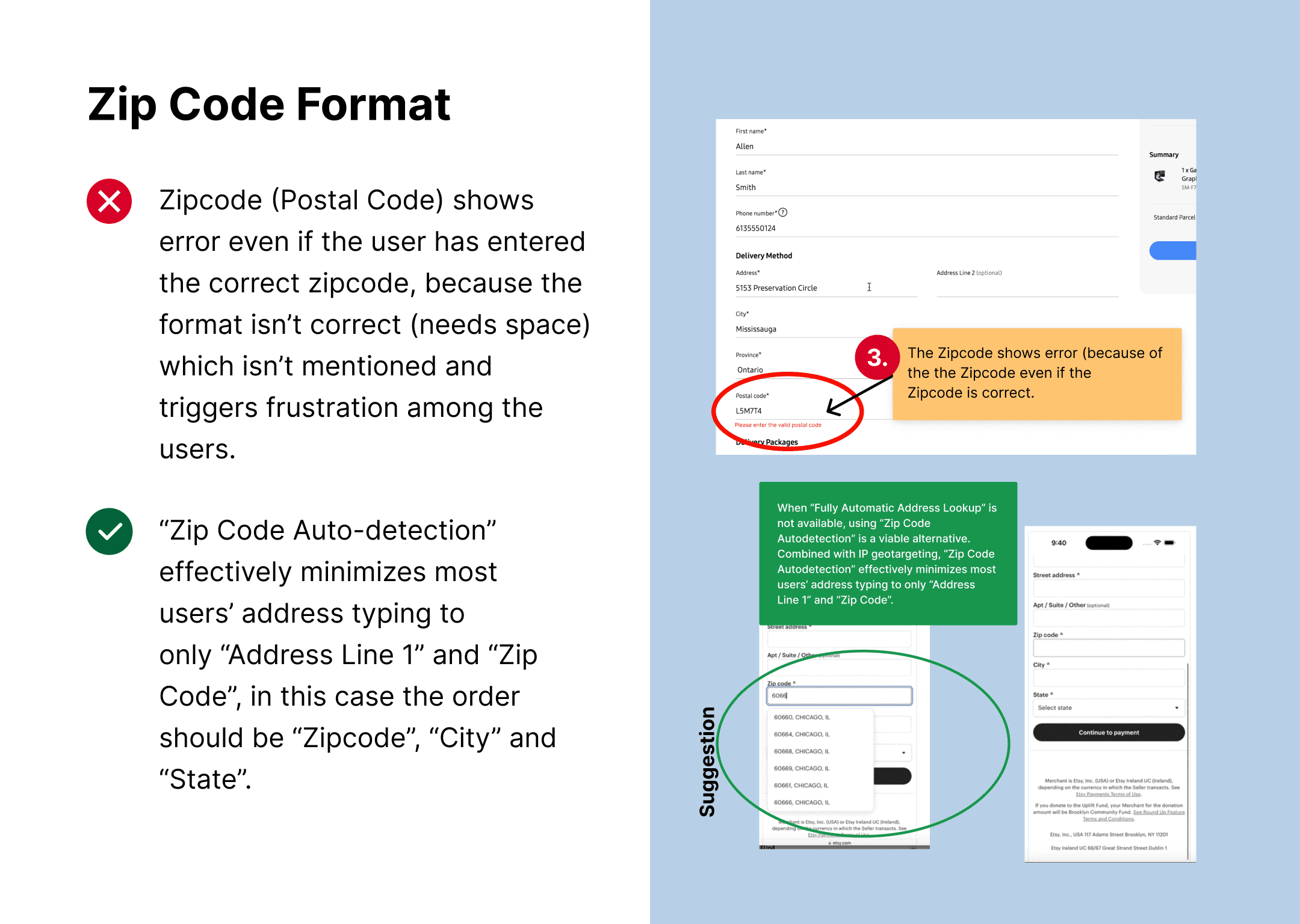 - Always have a fallback for autodetection ("Zip Code Autodetection” is a great fallback option for sites that don’t provide “Fully Automatic Address Lookup”)