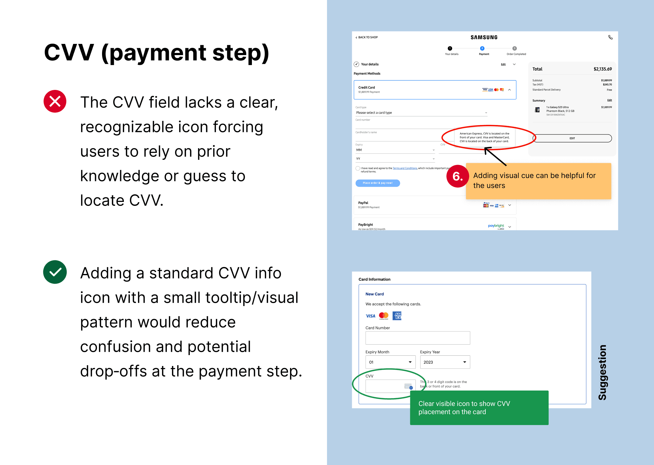 Unclear CVV help affordance: